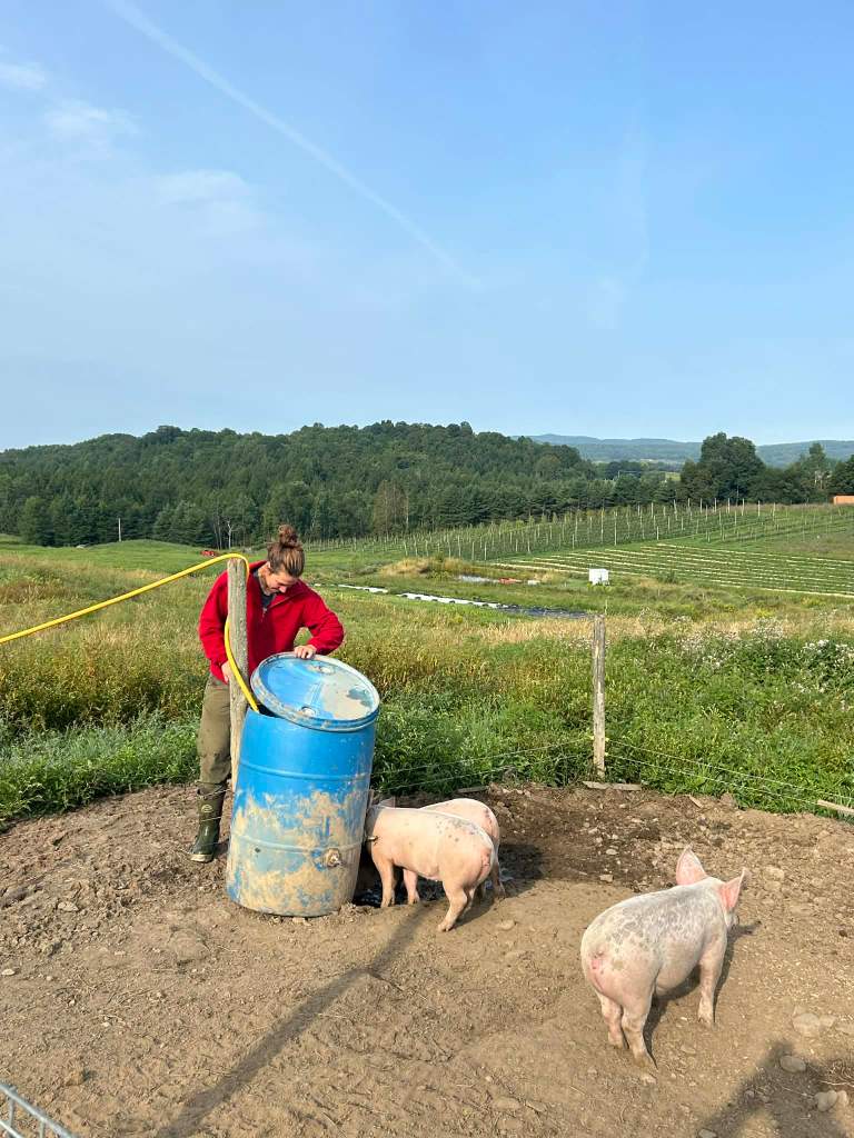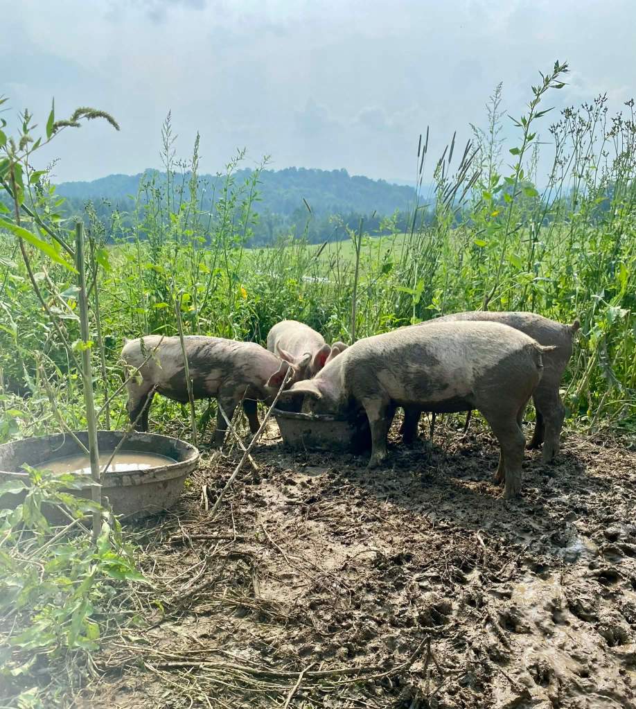 Porcs de pâturage en engraissement pendant la saison estivale