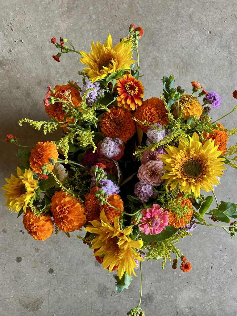 Zinnias, tournesols, calendules, cosmos, dahlias, mufliers… Toutes ces fleurs et bien d’autres égayeront votre maison. Un bouquet de fleurs vous sera offert dès la mi-juillet jusqu’à la fin septembre. Cette année, il sera possible de recevoir un bouquet de fleurs fraîches aux deux semaines, ou encore à toutes les semaines. Cela représente donc entre 5 et 10 bouquets de fleurs fraîches, avec à la fin de la saison, un bouquet de fleurs séchées.